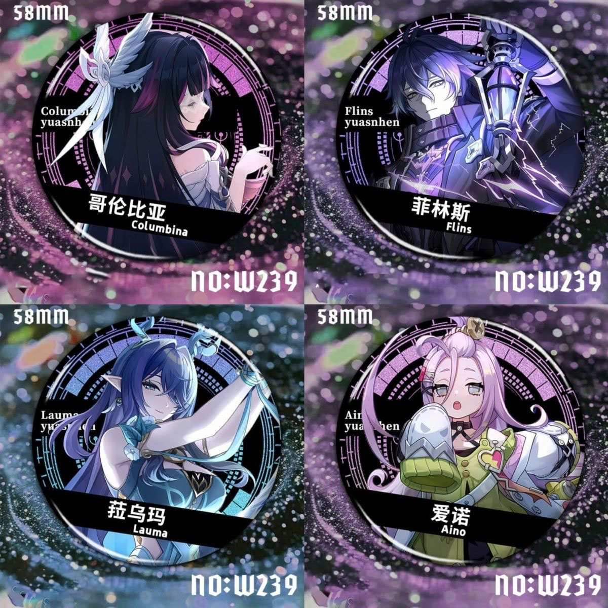 Columbina Lauma Flins Aino Genshin Character Pin Badges - 58mm Refrigerator Magnet Anime Game Merch Gift for Fans and Students - Zllada