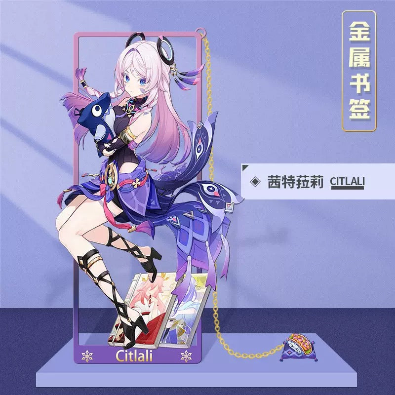 Segnalibro in metallo ambrato Genshin Impact - Merchandising di personaggi anime con scatola espositiva 3D - Regali di compleanno per fan, amici, giocatori, amanti dei libri - Zllada
