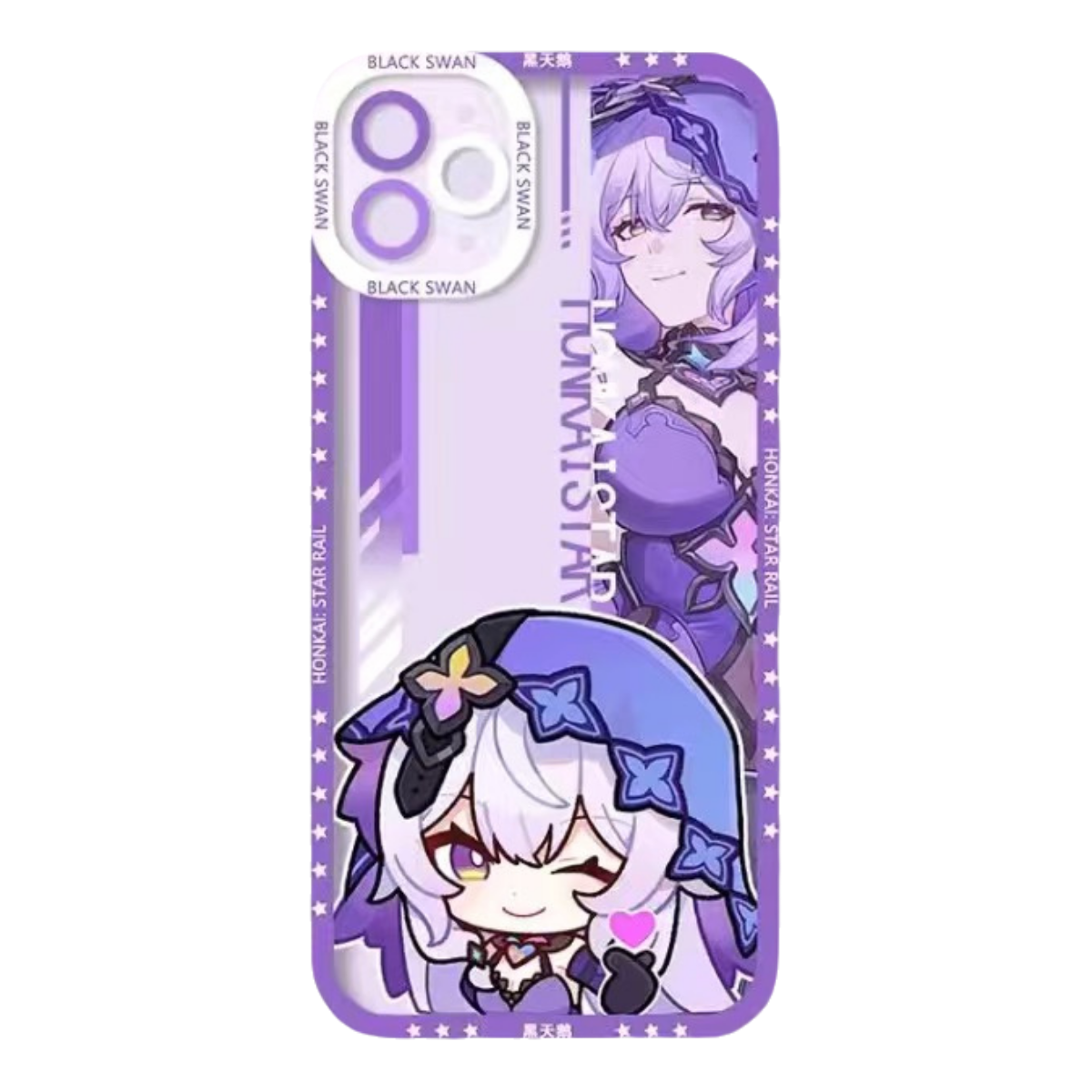 Black Swan Q Style Honkai Star Rail Phone Case - Compatible with iPhone 16 15 14 13 12 11 Series - Transparent Silicone, Honkai Star Rail Merchandise for Various Models-Zllada