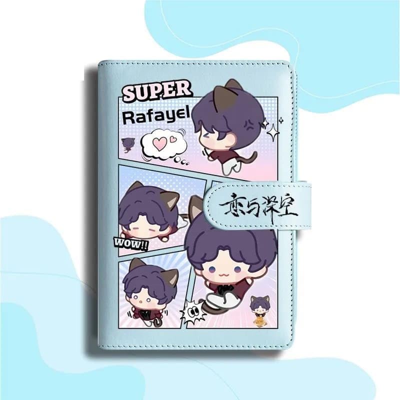 Blue Love Deepspace Planner Journal - Blue A6 PU Leather Binder with 80 Sheets (160 Pages) Grid Lines - Chibi Design for Fitness Daily Plans Fan Gifts - Zllada