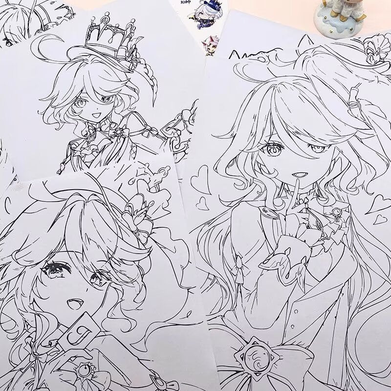 Furina Genshin Impact Coloring Book Merch - Anime Merchandise Tracing and Sketch Book - 30 Pages of Line Art - Hand-Drawn Anime Characters Sketchbook - Gift for Game Fans - Zllada