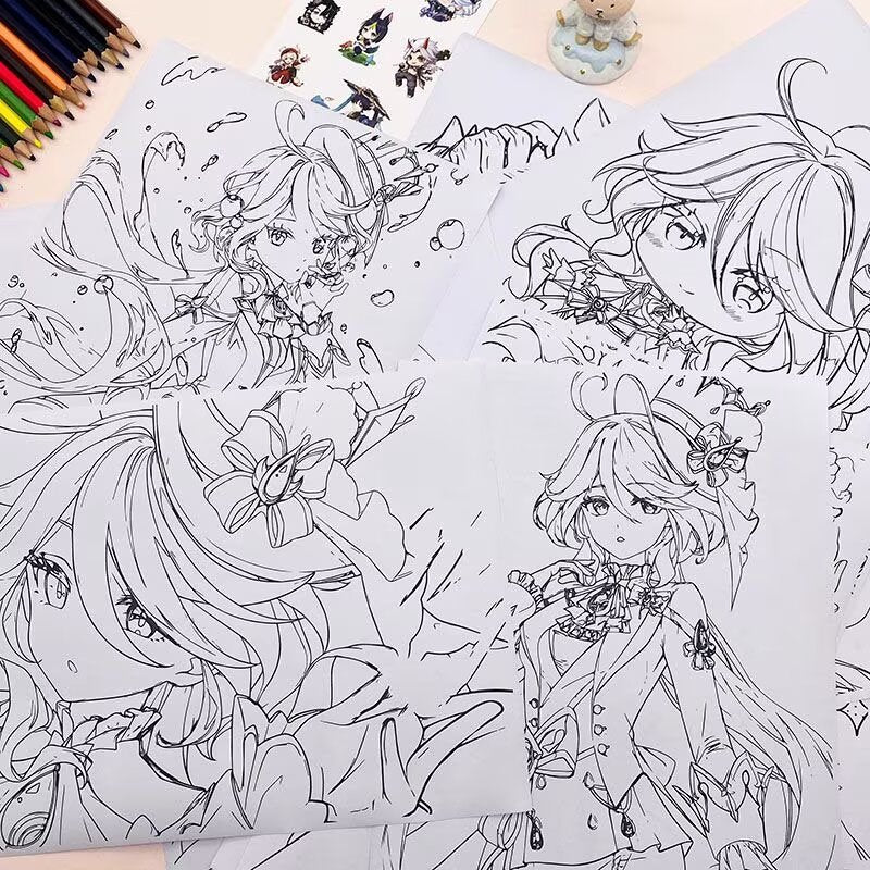 4-Creativity:Featuring 30 intricate and beautifully designed illustrations, this coloring book is ideal for tracing practice, personal art projects, or collecting. A must-have for anime and Genshin Impact enthusiasts! The Perfect Gift for