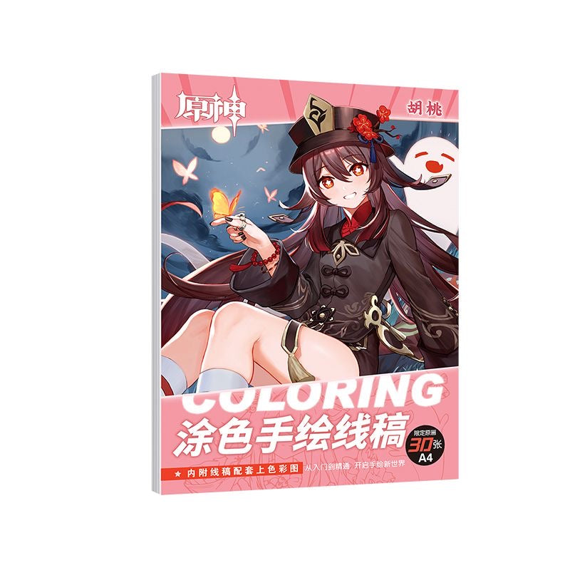 1-Designed for Genshin Impact Fans:This coloring 30 Pages Paper /Notebooks Products book features anime-inspired artwork based on the beloved Genshin Impact game. With 30 original A4-sized illustrations, immerse yourself in the magical world of Genshin through creative activities