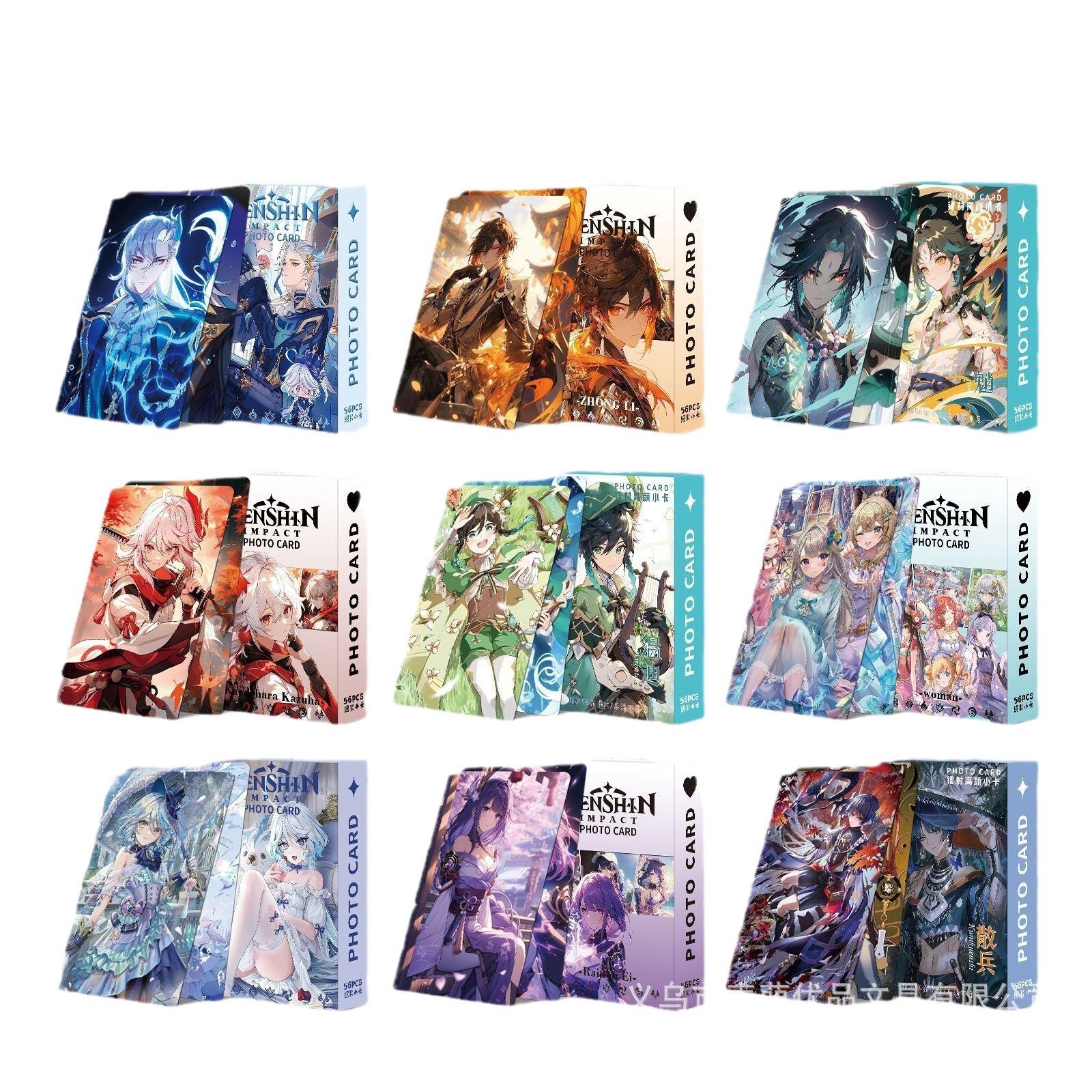 Genshin Impact Holographic Card Set - 50 Anime-Style Collectible Cards for Fans and Gamers - Game-Themed Merchandise - Zllada