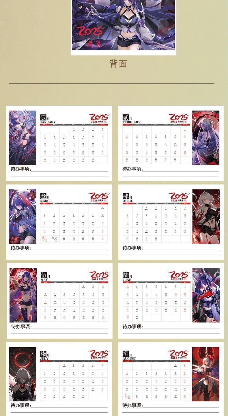 Honkai Star Rail Acheron Desk Calendar - 2025 Anime Merch Game Figure Yearly Calendar - Gift for New Years - Zllada