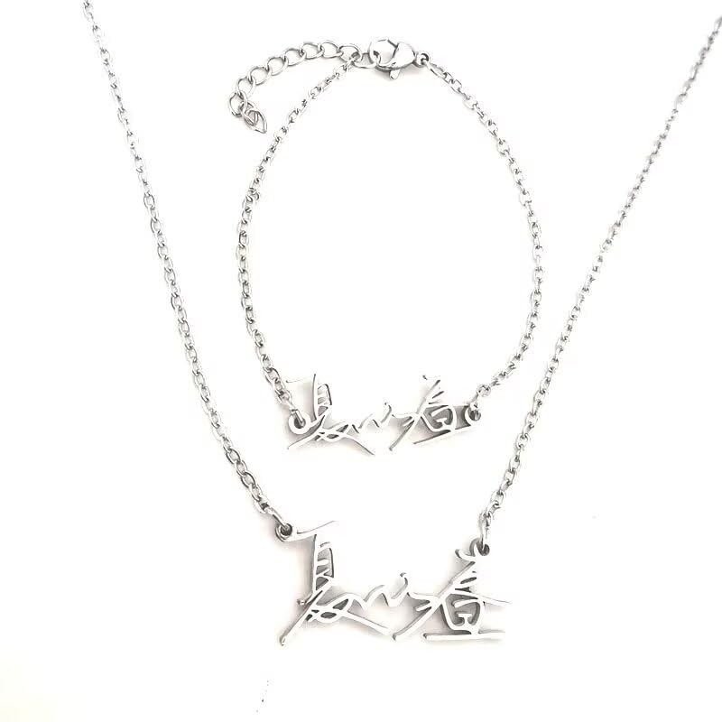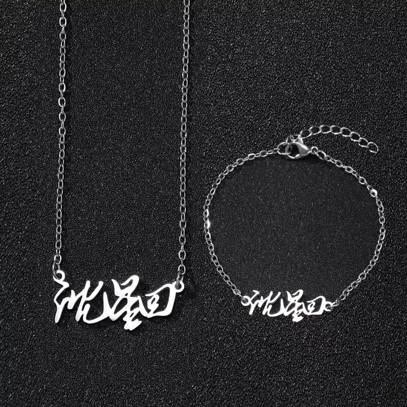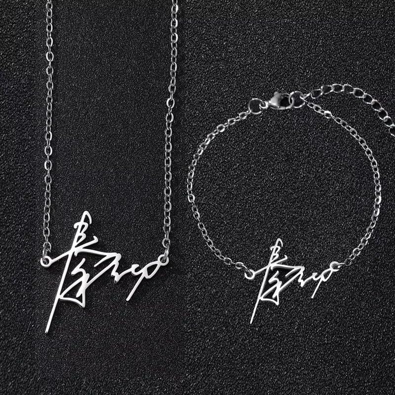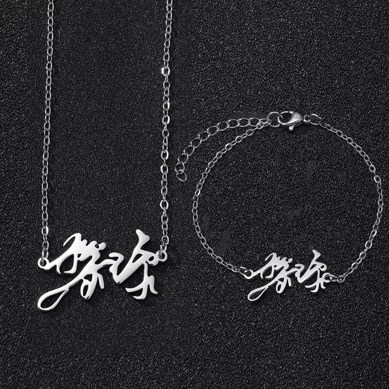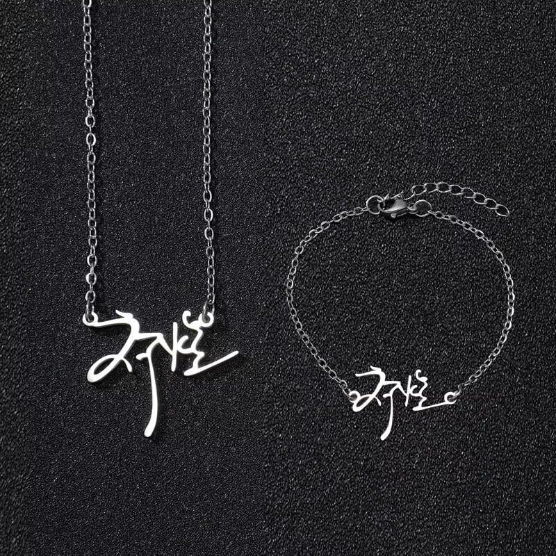 Love Deepspace Name Necklace & Bracelet Set - Titanium Steel English Chinese Letters Sylus Zayne Xavier Rafayel Caleb Charms - Anime Game Fan Gift