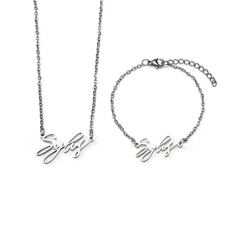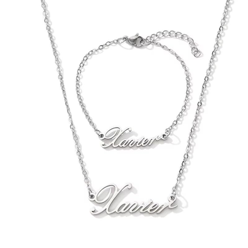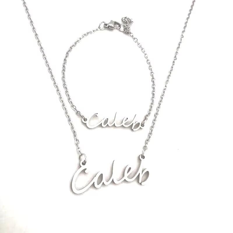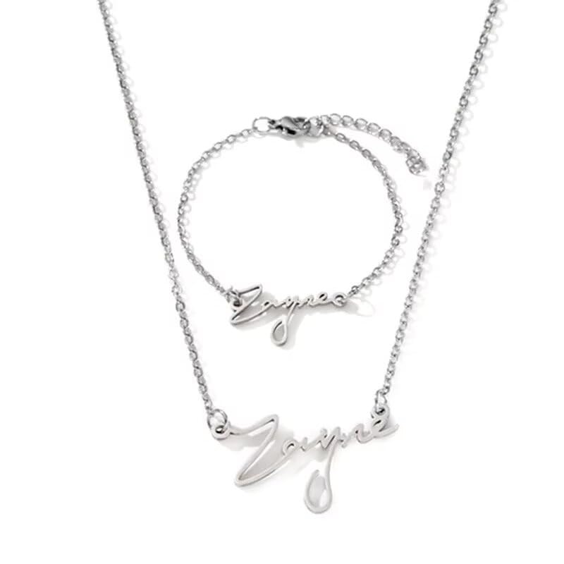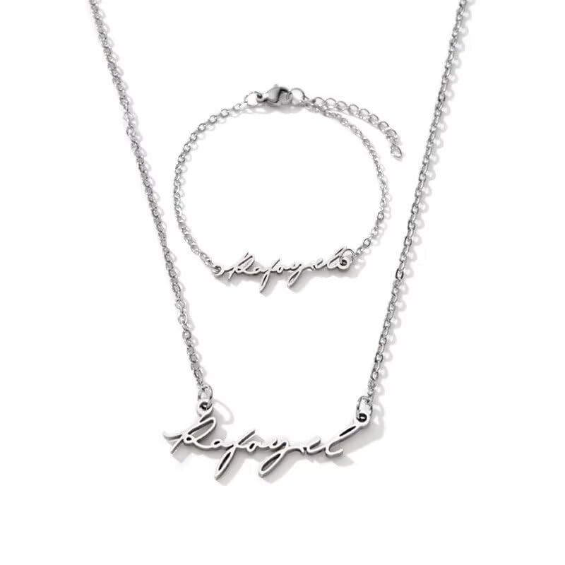 Love Deepspace Name Necklace & Bracelet Set - Titanium Steel English Chinese Letters Sylus Zayne Xavier Rafayel Caleb Charms - Anime Game Fan Gift