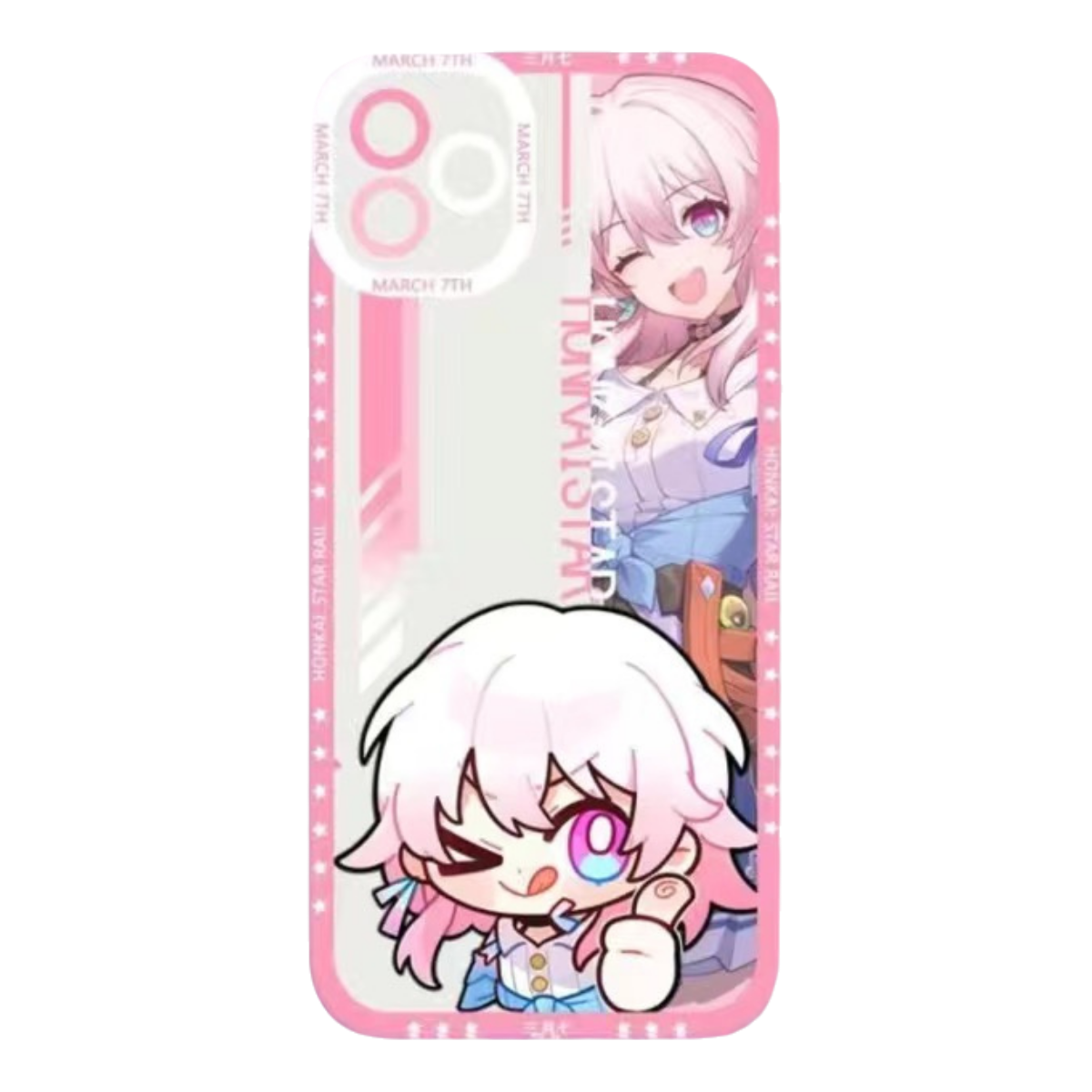 March 7th Q Style Honkai Star Rail Phone Case - Compatible with iPhone 16 15 14 13 12 11 Series - Transparent Silicone, Honkai Star Rail Merchandise for Various Models-Zllada