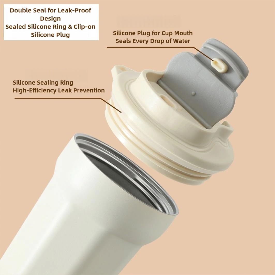 Advanced Leak-Proof System: Equipped with a sealed silicone ring and a clip-on silicone plug, this mug ensures maximum leak prevention, allowing you to carry it confidently in your bag